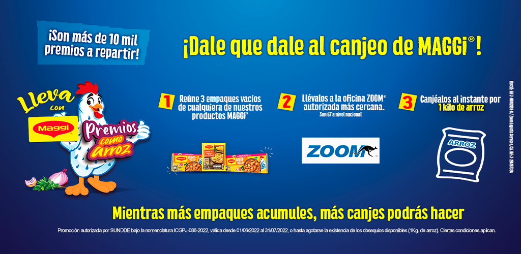 A partir del 1° de junio y hasta el 31 de julio de 2022, ZOOM en alianza con Nestlé ® Venezuela, traen la promoción Premios como arroz con Maggi.